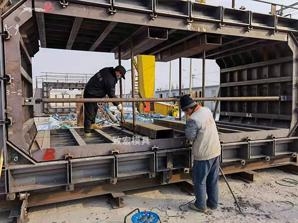 1)大體積矩形箱涵模具、綜合管廊模具預(yù)制過程中的幾何尺寸、預(yù)埋管道等各方面匹配精度要求高、質(zhì)量控制嚴(yán)。